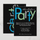 Convite de despedida de solteiro elegante, ou personalize para qualquer ocasião. Letreiro em estilo de bloco divertido e alegre em verde, azul e cinza em fundo preto. Design contemporâneo elegante é perfeito para uma última despedida, noite de rapazes ou festa de despedida de solteiro. Personalize online com os detalhes do seu evento.
