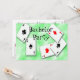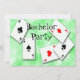 Este convite divertido é perfeito para uma despedida de solteiro com cassinos ou cartas. Na frente, mostra quatro ases em um fundo verde. No verso, mostra algumas cartas e os detalhes da festa. Todo o texto é personalizável.