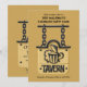 Um convite "masculino" maravilhoso com uma placa de taberna com uma caneca de cerveja. O fundo é dourado escuro e a placa é dourada clara e está pendurada em uma grossa corrente preta. Perfeito para qualquer celebração masculina.