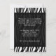 Convite de despedida de solteiro elegante, ou personalize para qualquer ocasião. Fundo listrado preto e branco de zebra com design de smoking e gravata borboleta clássicos. Design contemporâneo elegante é perfeito para uma última farra, última noite, las vegas ou noite de rapazes. Personalize online com os detalhes do seu evento.
