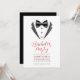 Silhueta de smoking preto com botões vermelhos, um convite de despedida de solteiro elegante.