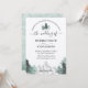 Belo convite de casamento rústico e elegante com montanhas de aquarela e árvores verdes para o seu casamento de destino de aventura. Sensação moderna e rústica ao mesmo tempo