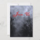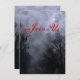 Um modelo de convite personalizado com letras nojentas em um céu nojento de Halloween com árvores azuis negras ao longo de uma estrada escura assombrada, ravens góticos e uma lua de cheio nublada com letras nojentas em vermelho e azul. Clique em Personalizar para alterar fontes, cores, dimensionamento e muito mais, até salvar seu design para mais tarde."