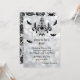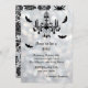 Um candelabro de cristal negro e morcegos de areia decoram este brilhante convite do Festa de Halloween. O dorso é ainda embelezado com uma cor damasco de aranha rico em prata.
