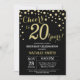 Convite de aniversário de 20 com fundo de diamante preto e Dourado brilhante. Dourada Confetti. Aniversário Adulto. Homens ou Mulheres Aniversário. Para mais personalização, clique no botão "Personalizar" e use nossa ferramenta de design para modificar este modelo.