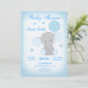 Elefante Azul com Convite para Chá de fraldas de Rapaz do Balão. Adicione outros acessórios de chá de fraldas correspondentes. Personalize de acordo com sua preferência.