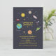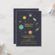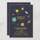 Este convite é "fora deste mundo" bonito e apresenta elementos espaciais de foguetes a planetas. Perfeito para ambos os sexos.