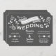 Convidado de casamento rústico e astuto, projetado em cinzas de ardósia e gráficos no estilo giz branco e letras. Design duplo com detalhes de recepção na parte traseira. Todo texto está formatado e pronto para que você simplesmente substitua ou remova onde for necessário no botão "Personalizar esta modelo". Sua escolha de vários estilos de forma cortados. Coordena-se com a "salvar a data" e uma coleção inteira de artigos de papelaria de casamento em www.zazzle.com/monogramsandmonikers