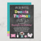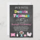 Nosso convite de aniversário original, mais vendido, do estilo Rosquinha & Pajamas Chalkboard é o convite perfeito para qualquer festa de temas do rosquinha e do pajama. Nosso design apresenta um fundo de quadro, uma mistura de letras padrão divertidas, como bolinhas, listras e gesso, chinelos de coelho, uma pilha de rosquinhas, garrafa de leite e um travesseiro de fêmur cor-de-rosa, que pode ser personalizado com o monograma ou a idade do seu filho.