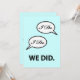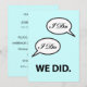 Convite de recepção pós-casamento, anúncio de fuga para casar ou convite para festa com o design engraçado "Eu Disse Sim Nós Fizemos" e seu texto personalizado no verso. Se você já é casado, fugiu para casar ou teve um casamento em cartório ou em destino de viagem e está tendo uma festa de celebração do casamento mais tarde, personalize este convite simples — com um toque de humor — para o seu evento.
