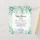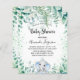Para um chá de fraldas, comemorando um menino. Um fundo branco, um bebê elefante giro e eucalipto verde e faíscas verdes. Personalize e adicione o nome da futura mãe e os detalhes da festa. O nome e o texto: Chá de fraldas são escritos com um script de estilo manuscrito