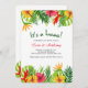 Folhagem tropical exuberante e flores coloridas criam as bordas desse convite tropical. Perfeito para todos os temas havaianos e comemorações de verão.<a href='http://www.freepik.com/free-vector/exotic-floral-background_874892.htm'>Concebida por Freepik (). </a>() O cartão é fácil de personalizar com seu texto, fonte, cor da fonte e escolha de seis tipos de papel.<br/>() Não exatamente o que você está procurando? Todos os nossos produtos podem ser personalizados para atender às suas necessidades sem custos adicionais.<br/>() Basta entrar em contato conosco em askcottonlamb@gmail.com<br/>() Coordenando os produtos disponíveis: