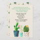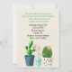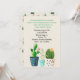Na moda convite para eventos feito em uma cor cremosa de marfim, com gráficos de três cactos coloridos em punho ao longo da parte inferior. A parte de trás do convite tem um padrão de cactos. Personalize todo o texto do evento.
