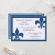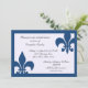 Esses convites de evento Fleur de Lis atemporais em azul escuro são perfeitos para qualquer evento, desde chás de noiva até jantares de ensaio. Os convites apresentam dois símbolos Fleur de Lis azul escuro colocados à esquerda e à direita do convite com uma borda azul. Preencha o modelo com as informações do seu evento. Clique em "personalizar" para fazer alterações mais extensas na fonte e no posicionamento do texto.