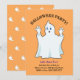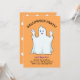 Lindo convite de fantasma de gengibre de Halloween. Há um padrão de fantasma em fundo laranja no verso. Todos os textos e números estão prontos para serem personalizados.