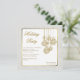 Convite corporativo de férias elegante feito em forma quadrada com gráficos de fundo branco invernal. Uma área de texto branco moldada em ouro, no meio, tem bonito ornamentos de bola de tom de ouro pendurados, no lado direito. Ouro texto marrom, na parte superior esquerda, diz Festa de Feriado. Personalize o texto marrom do ouro para a festa de férias da sua empresa.