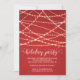 Feliz festiva e cordas brilhantes de luzes brancas colocadas sobre um fundo vermelho alegre com uma bela letra de rico com letra de escrita com letra de .