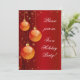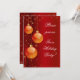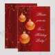 Convite de festa de férias com fundo vermelho escuro e ornamentos de ouro com espirais, fitas, flocos de neve e estrelas. Adicione facilmente seus próprios detalhes e faça convites para festas de festas.