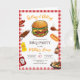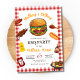 Faça da sua festa BBQ inesquecível com este modelo de convite editável divertido e vibrante! Com um design delicioso tema churrasco com hambúrgueres, cachorros quentes, espetinhos e mais, este convite é perfeito para churrascos de verão, reuniões familiares ou festas no quintal.