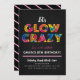 Um convite de festa divertido e colorido, perfeito para qualquer evento. Caracteriza salpicos e tipografia. Personalize o texto editável para a sua próxima celebração Glow.