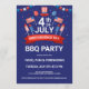 Fogos de artifício, bandeiras e balões de estrelas e listras, convite de churrasco, celebração do Dia da Independência.