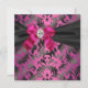 Convite de Festa Damasko Preto com Rosa Quente Fúc