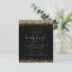 Convite de festa de 21º aniversário preto com brilho dourado. Uma alternativa menor de 4,5” x 5,6” econômica. Disponível em papel cartão SEMI BRILHANTE de 110 lb ou em papel STOCK MAIS FINO de 80 lb com acabamento em SEDA. Envelopes são opcionais extras. Bordas elegantes de confete falso dourado brilhante estão no topo e na parte inferior e também na parte de trás, em um fundo preto clássico. "Vigésimo primeiro" é definido em um estilo de escrita manual moderno. Personalize facilmente o restante do texto para o seu.