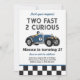 Convite de Festa de 2º Aniversário Corrida de Carros 'Two Fast 2 Curious'. Todo o texto é editável, personalize-o para se adequar ao seu evento.
