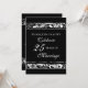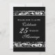 Convite de festa de aniversário de casamento de 25 anos em elegante padrão floral preto e branco, delicado e formal. Personalizável com os detalhes da sua festa.