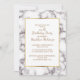 Convite de aniversário branco e cinza elegante com trim de ouro.