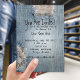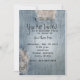 Um convite de festa de aniversário com uma imagem de fundo de jeans azul desgastado com furos. Personalize o texto preto com detalhes da sua ocasião.