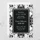 Convite de recepção de casamento com design damasco preto e branco. Se você já se casou e está organizando a celebração do casamento posteriormente, personalize este convite para o seu evento. Também serve como um anúncio de casamento se você teve uma cerimônia privada pequena ou um casamento em destino e deseja informar as pessoas. Texto totalmente editável, adicione suas próprias informações.