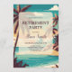 Convite de festa de aposentadoria com praia tropical ensolarada em cores retrô.