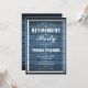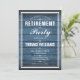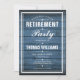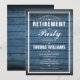 Um convite de festa de aposentadoria elegante pode ser personalizado com as informações do seu evento especial em um fundo de painéis de madeira rústica azul. Criado por Thisisnotme©