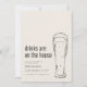 Convide amigos e familiares para celebrar sua nova casa com um convite encantador para uma festa de inauguração com o tema divertido "As Bebidas São por Conta da Casa". O fundo é um bege quente, criando uma atmosfera acolhedora e aconchegante. No lado esquerdo, os detalhes da festa são apresentados em uma fonte preta simples, garantindo clareza e elegância. À direita, uma ilustração minimalista de uma cerveja draft adiciona um toque de diversão e personalidade ao design. Este convite combina perfeitamente um tema leve com uma estética elegante, prometendo uma celebração de inauguração deliciosa e memorável.