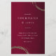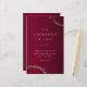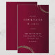 Um convite de festa de cocktail moderno e elegante com fundo texturizado vermelho sombrio e anéis de cocktail dourados. Perfeito para eventos empresariais ou pessoais.