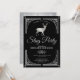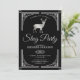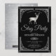 Surpreenda seus convidados com este convite de despedida de solteiro sofisticado, apresentando uma borda ornamentada prateada e um belo cervo com tipografia estilosa contra um fundo preto. Basta adicionar os detalhes do seu evento neste modelo fácil de usar para torná-lo um convite único. Vire o cartão para revelar um belo padrão de estrelas prateadas no verso do cartão.