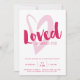 Um convite para uma festa de dia dos namorados em casa ou na igreja, ou para um evento da igreja de jovens/senhora. Este design tipográfico moderno apresenta um coração cor-de-rosa claro desenhado à mão sobreposto com "Amado" em fonte letra pincel fuchsia rosa e a referência da escritura Jeremias 31:3 em um fundo branco. O verso é em rosa fuchsia sólido. Peças coordenadas estão disponíveis.