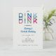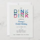 Vamos Dink! Celebre o seu jogador de pickleball ou fã com esses convites de festa divertidos e vibrantes com a palavra DINK em uma fonte multicolorida e negrito. O texto é personalizável. A idade de aniversário também é personalizável. Parte de uma coleção da Parcel Studios.