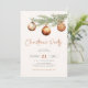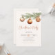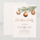 Convite de festa de Natal minimalista neutro com ramo de pinheiro em aquarela decorado com enfeites de bola de Natal.