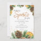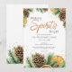 Um convite de feriado alegre com charme rústico e aconchegante. Este design apresenta pinhas em aquarela, fatias de citrinos e ramos de sempre-verde, combinados com a frase “Making Spirits Bright” em letra cursiva suave. Adequado para jantares de Natal, festas de cocktails ou reuniões sazonais. Todo o texto é totalmente editável para se adequar ao seu evento.
