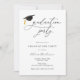 Convite de festa de formatura com script de caligrafia e boné de formatura de aquarela. Personalize com suas informações para o formando.