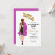 Festa de formatura Convite à apresentação de retrato feminino desenhando vestido preto, boné e vestido cor-de-rosa, cabelo castanho avermelhado longo. Balões de ouro de 2024.