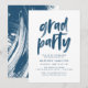Convites de festa de formatura elegantes e modernos com uma fonte de pincel pintada à mão trendy e pinceladas abstratas em azul marinho. Personalize os convites de formatura chiques com seus detalhes personalizados de formatura para uma aparência que impressionará os convidados!