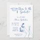 Convite para Festas de formatura retrorreflectível com chapéu de formando e pernas com calcanhares e coquetéis.