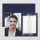 Com delicadas folhas de greenery em aquarela sobre um fundo azul marinho, este convite de formatura na faculdade de direito pode ser personalizado com a foto do formando e detalhes da celebração. Criado por Thisisnotme