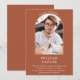 Com um simples arco dourado em um fundo de terracota, este convite de festa de formatura elegante pode ser personalizado com a foto do formando especial. Criado por Thisisnotme