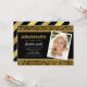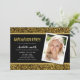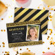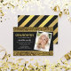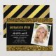 Convite de Festa de Formatura com Brilho Dourado apresenta as palavras "Festa de Formatura" em uma fonte divertida sem serifa em folha dourada falsa com um brilho dourado falso no topo e na parte inferior e um fundo preto no centro. O convite tem uma cor semelhante ao dourado, preto e um padrão de listras de folha dourada falsa no verso.