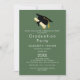 Celebre sua conquista com este convite de festa de formatura elegante. Com tipografia clássica em verde floresta escuro e branco, acentuado por uma boina de graduação em aquarela preta e dourada, este design moderno é perfeito para uma celebração ao ar livre