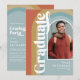 Celebre o formando com esses convites de festa de formatura legais! Com um fundo de arco de cores vintage boho, uma foto do formando e um modelo de texto retrô fácil de personalizar.